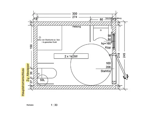 - Raccordements Eau et Eaux Usées : Installation complète dans les parois, évacuation des eaux usées en tuyaux de 110 mm, alimentation en eau PE32 avec vanne, tuyaux en PVC soudés.