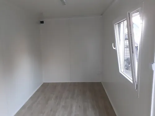 Conteneur social 17m2 + bureau + WC, chêne doré